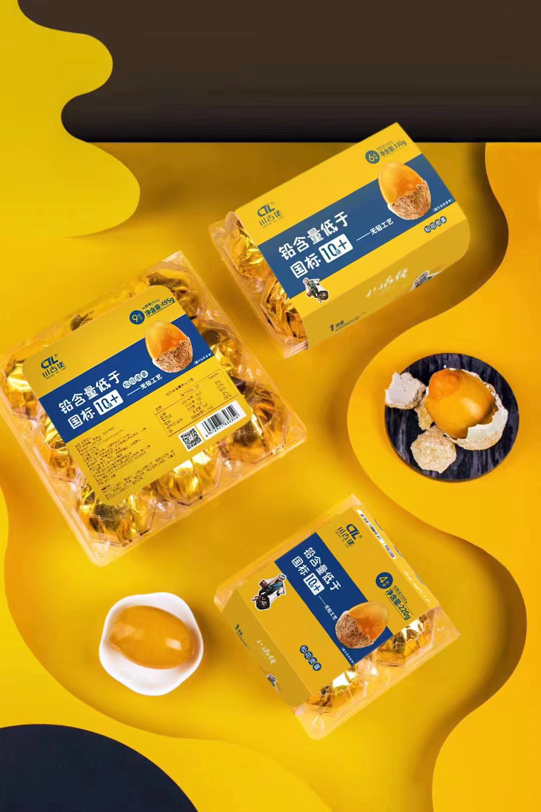 “蒲江,漢臨邛縣地。后魏置廣定縣,隋改為蒲江,南枕蒲水故也。”自古盛產井鹽,并因獨有口感而盛行于廟堂顯貴,又有貢鹽一說,民間用之者少。相傳明末天下大亂,古鹽井湮廢,蒲江手工鴨蛋制作世家古氏佬者見狀突發奇想,欲以古井鹽水改良制作混沌子,古佬遂以上好鴨蛋為料,祖傳五谷焚燃法制作炭灰數斗,秘制石灰適量,古井鹽水腌之苴于灰沙嘴,三日一番,共三番,此后取出風干并置于老壇兩周。